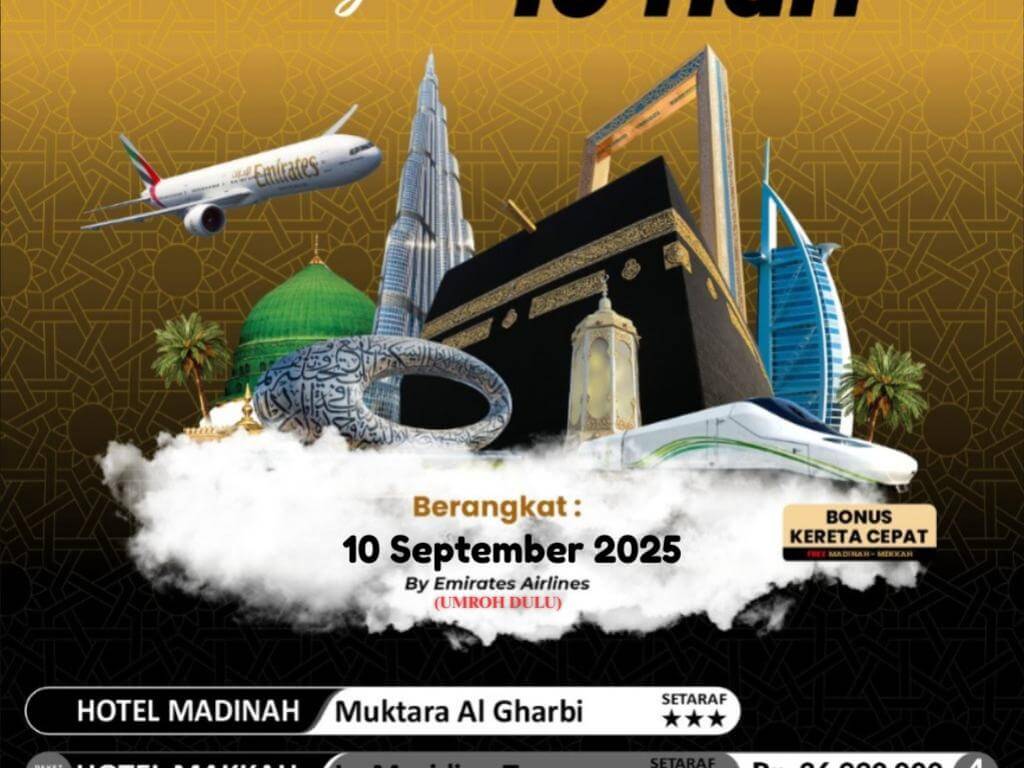 PAKET UMROH PLUS DUBAI 10 SEPTEMBER 2025 10D BY EMIRATES GOLD