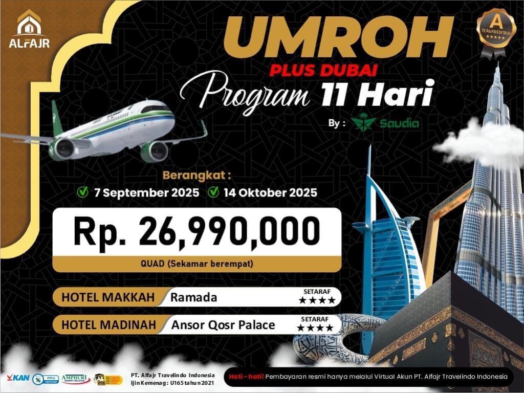 PAKET UMROH + DUBAI 7 SEPTEMBER 2025 11H BY SAUDIA