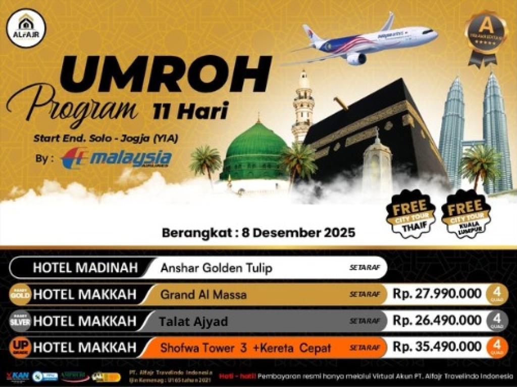 PAKET UMROH 8 DESEMBER 11H MH GOLD