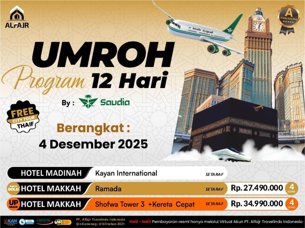 PAKET UMROH 4 DESEMBER 2025 12 HARI SAUDIA AIRLINES
