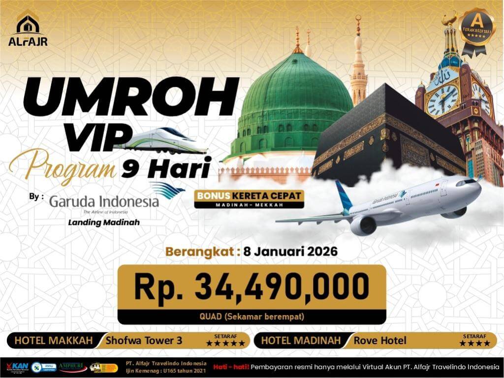 PAKET UMROH 8 JANUARI 2026 GA 9H VIP