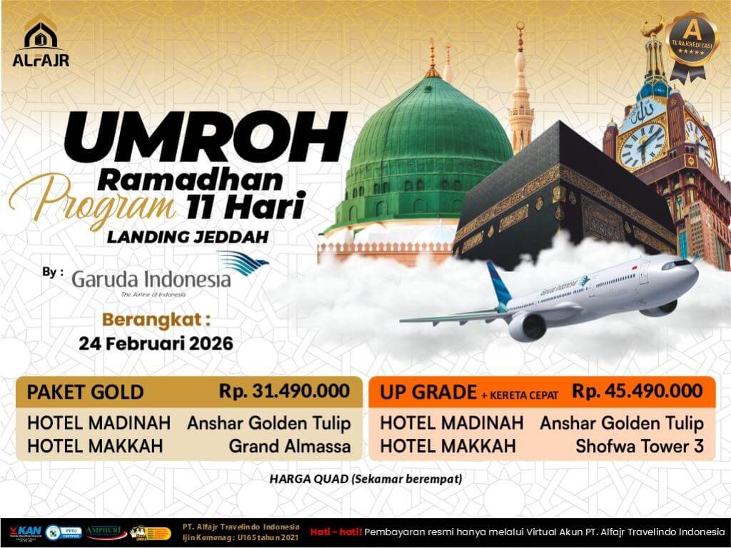 PAKET UMROH 24 FEBRUARI 2026 GA 11 H GOLD RAMADHAN