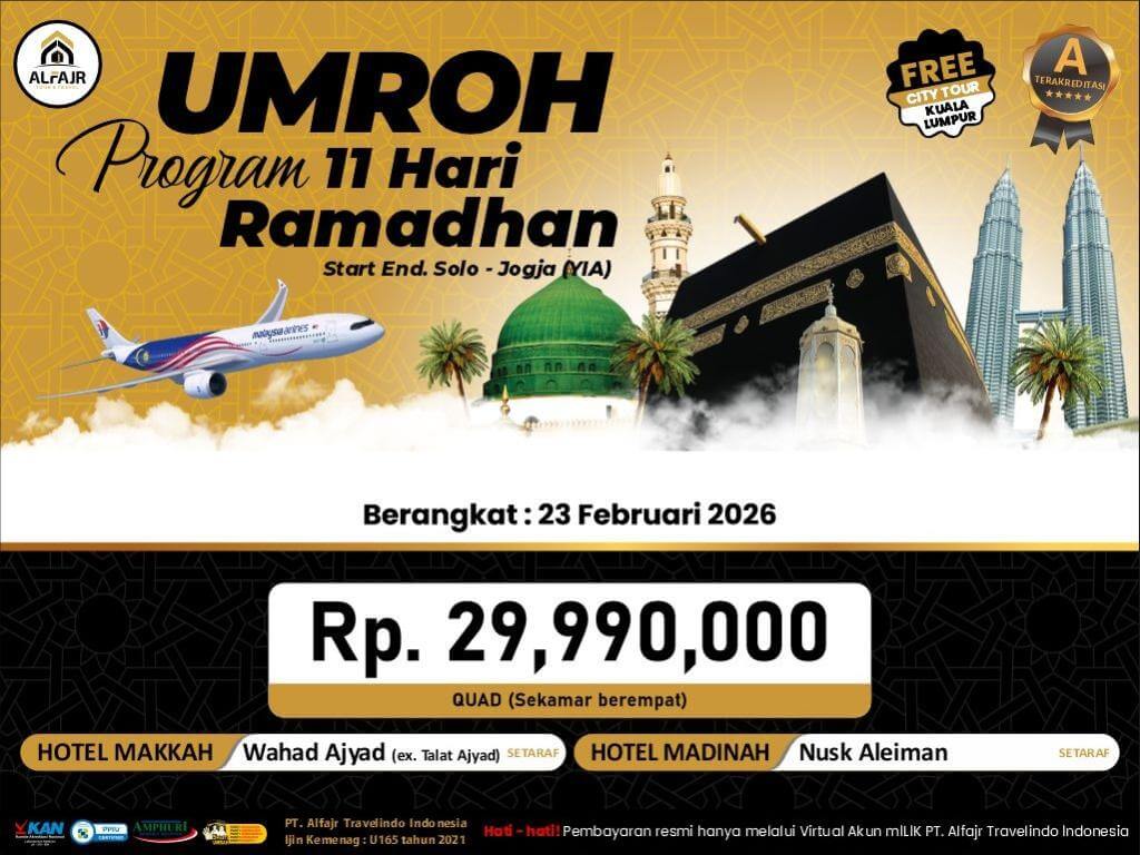 23 FEBRUARI 2026 BY MALAYSIA AIRLINES 11H UPSELL (UMRAH RAMADHAN)
