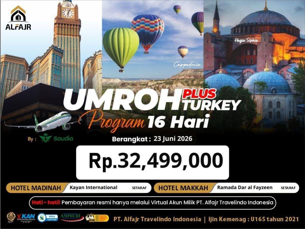 PAKET UMROH 23 Juni 2026 UMROH+TURKI 16 H